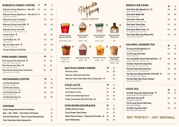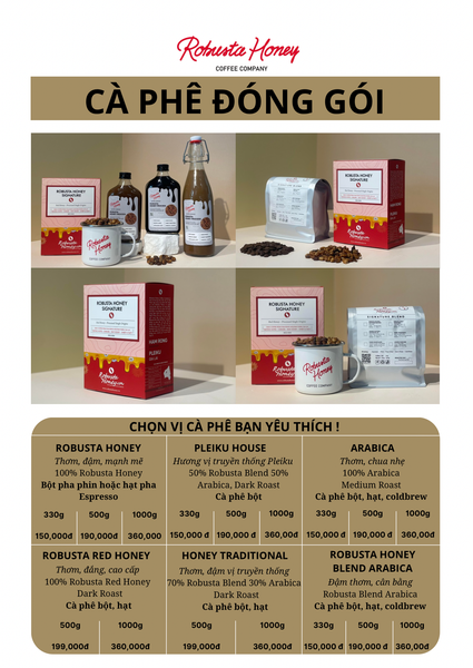 MENU CÀ PHÊ ĐÓNG GÓI ROBUSTA HONEY COFFEE COMPANY