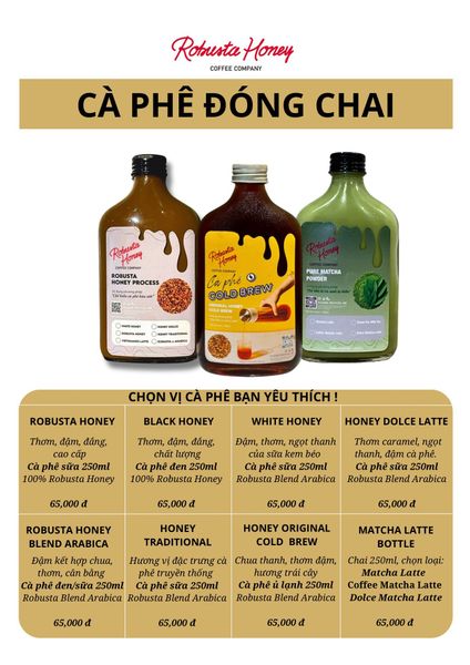 MENU CÀ PHÊ ĐÓNG CHAI ROBUSTA HONEY COFFEE COMPANY